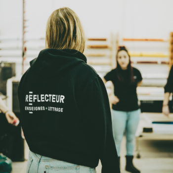 At Reflecteur, sign-making goes far beyond design and installation, it’s built on a culture of empowerment. Inspired by the “liberated company” model, our management style breaks away from traditional hierarchies to give every team member real decision-making power, whether in graphic design, fabrication, or the installation of illuminated signs and wayfinding systems.