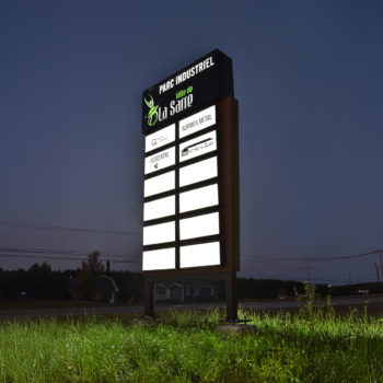 This project perfectly illustrates Réflecteur’s ability to deliver signage that is innovative, durable, and visually appealing. In addition to providing an effective communication tool, this type of pylon supports a broader territorial visibility strategy. Its dimensions—8’ x 18’ x 22’’—allow for the display of multiple businesses or services in a shared space, making it particularly well suited to industrial zones like the City of La Sarre’s industrial park.