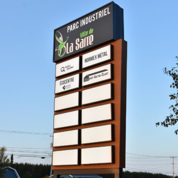 The City of La Sarre entrusted Réflecteur with the task of revitalizing the industrial park’s signage pylon to give it a more up-to-date and representative look that reflects the municipality’s dynamic image. The primary goal was to transform the sign into a true symbol of welcome, while enhancing its visibility and visual impact for users, visitors, and surrounding businesses.