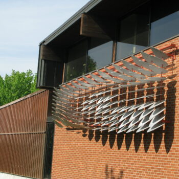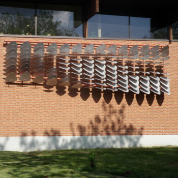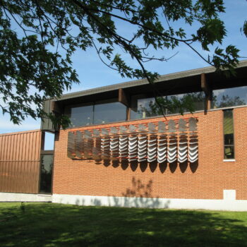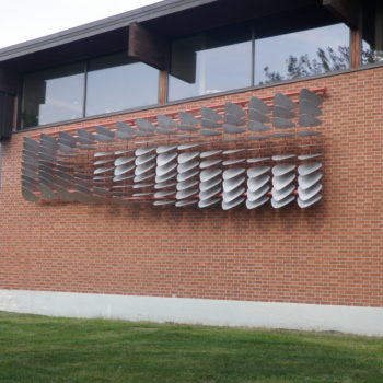 As part of the Public Art Integration Program, artist Brigitte Toutant was commissioned to create a monumental artwork for the Félix-Leclerc Hall in Val-d’Or. Completed in 2011, this project marked a significant milestone for our company, allowing us to deepen our involvement in the arts and collaborate directly with professional artists from the region. The piece, titled Foisonnement, is a visually dynamic installation that enhances the exterior of the hall and symbolizes growth and expansion.