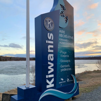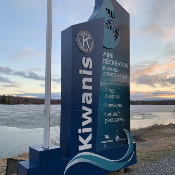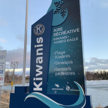 In 2018, the Kiwanis Club, in collaboration with the City of Rouyn-Noranda and Agnico Eagle, launched a signage project aimed at improving visibility for Kiwanis Beach. This popular recreational area, known for its free lakeside activities, deserved signage that matched its strong community identity. The goal: to design a distinctive, environmentally respectful pylon that would guide and inform visitors while blending seamlessly into the site’s sensitive natural landscape. The result is a structure that is durable, aesthetic, and responsible, enhancing the site’s visibility and clearly affirming its identity.