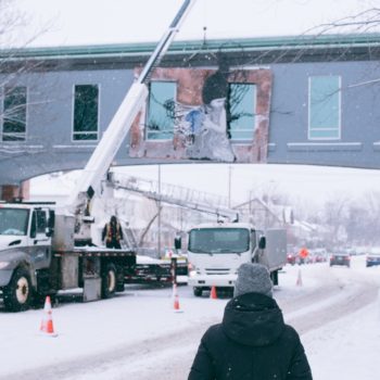 As part of the cultural movement Culturat, an initiative aimed at promoting the integration of art in public spaces in Rouyn-Noranda, visual artist Karine Berthiaume created an inspiring artwork titled Gardienne du temps (Guardian of Time). This original installation was placed on the walkway connecting the Rouyn-Noranda Convention Centre to Hôtel Le Noranda, a place where time seems suspended, yet where life and events are constantly intertwined.